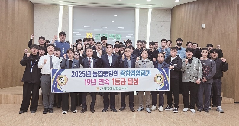 [축산신문 심근수 기자] 대구 군위축협(조합장 박배은)이 농협중앙회가 실시한 2025년 종합경영평가에서 19년 연속 1등급을 달성<사진>하며 지역 대표 축산업협동조합으로서의 위상을 다시 한번 입증했다.