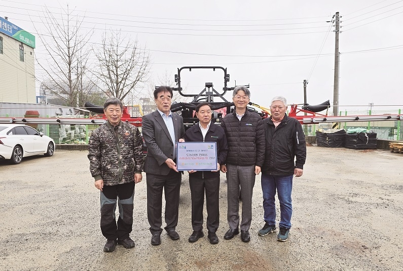 이번 행사는 청주축협이 도농상생자금 2천만원, 내수농협이 1천900만원의 예산을 지원해 승용관리기(농약살포기) 1대를 양축농가에 전달하는 방식으로 진행됐다.