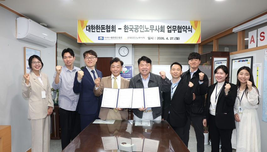 대한한돈협회(회장 이기홍)는 지난 4월 27일 한국공인노무사회(회장 이완영)와 한돈산업 현장의 안정적인 노동환경 조성과 합리적인 노무관리 체계 구축을 위해 업무협약(MOU)<사진>을 체결했다.