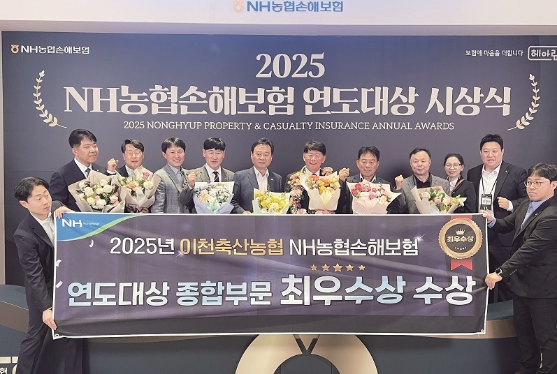 [축산신문 김길호 기자] 경기 이천축협(조합장 임영묵)은 지난 4월 14일 열린 NH농협보험 2025년 연도대상에서 손해보험과 생명보험 양 부문을 동시에 수상<사진>하는 영예를 안았다.