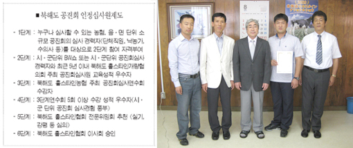 그동안 대회는 양적 질적 발전을 거듭하여 국제적인 행사로 자리 매김 하였으며, 주최측의 요구가 아닌 낙농가들의 자발적인 참여로 대회가 이루어지고 있다. 더불어 1~2개에 불과했던 지역단위 홀스타인품평회가 2004년 제1회 포천시 홀스타인품평회를 시작으로 금년에는 경북도, 충북도, 양주, 이천, 철원, 안성, 평택, 정읍, 남원, 임실 등 전국에서 10여개 이상의 대회로 확대되었으며 앞으로 더욱 증가할 것으로 예상되고 있다. 이에 한국종축개량협회 유우개량부에서는 홀스타인품평회에서 심사를 담당할 심사원의 역량을 높이고, 인정심사원 제도를 알아보기 위하여 2009년 8월 5일~9일에 걸쳐 실시된 일본 젖소심사원 교육에 필자와 양신철 팀장, 임요순 소장이 참석했다. 이번에 참석하여 습득한 정보와 일본의 인정심사원 제도에 대하여 소개하고자 한다. 비교심사·심사원 행동요령 등 세부 이론교육 심사원 선발 6단계 절차…8년이상 소요 3일간 현장교육…심사결과 예측·비교 흥미 이번 교육의 이론분야는 사또우 심사부장과 진보우 전 심사부장이 담당하였으며 현장교육을 사또우 심사부장이 공진회장을 동행하면서 실시했다. 사또우 심사부장은 북해도 홀스타인협회 공진회 인정심사원 제도와 비교심사에 대한 세부적인 이론교육을 실시했는데 주요내용은 비교심사시 경산우는 유기, 유용성, 지제, 강건성과 활력, 외모, 체적 등으로 우선순위를 두고, 미경산우는 월령에 맞는 성장발육과 균형감, 품위와 자질, 건강하면서 활기가 있고 성질이 좋은 것, 등허리가 강하고 엉덩이 모양새가 좋은 것, 사지와 뒷꿈치가 강한 것, 유용특질이 좋은 것, 가슴이 충실하고 복강이 충분한 용적을 가진 것 등을 순위에 두어야 한다는 내용이었다. 특히 BCS가 높은 개체, 키가 크고 체장이 길지만 가슴이 빈약한 개체는 상위에서 제외해야 한다는 원칙과 털을 이식한 개체는 공진회 출장을 금지시킨다는 규정도 소개했다. 더불어 공진회 심사원의 행동요령과 심사장에서 심사의 순위, 서열결정에 대한 구두 표현방법, 강평의 기본규칙, 강평순서, 심사용어에 대한 자세한 교육이 있었다. 그밖에 낙농현황과 검정성적에 대한 소개가 있었다. 북해도는 급격한 배합사료 가격의 상승으로 배합사료 위주의 사양에서 방목과 조사료 위주의 사양관리로 전환되고 있는데 그 결과 검정성적이 많이 떨어졌다고 한다. 즉 305일 검정성적이 2008년 기준으로 9,053kg으로 도부현의 9,315kg과 일본 전체평균 9,147kg에 미치지 못한다는 것이었다. 또한 연간 심사두수는 전체 검정우 569,782두 중에서 10.9%인 61,943두만이 참여하여 31%대의 우리나라와 비교하여 매우 낮은 수준임을 알 수 있었다. 진보우 전 심사부장은 일본의 체형심사와 선형평가법에 대한 세부적인 교육을 하였다. 일본은 2004년 개정된 9점제 홀스타인종 체형심사표준을 인터불의 요구사항을 수용하고 세계홀스타인후리지안연합회(WHFF) 권고안을 따르기 위하여 2007년부터 개정하여 선형심사를 실시하고 있다. 즉 산유량 위주의 개량이 진행되면서 산차, 번식, 생산수명이 단축된다는 국제적인 문제점을 개선하기 위하여 별도의 항목으로 분리되어 있던 외모와 체적을 합쳐 체모와 골격으로 단일화하여 25%, 예각성과 장수성을 감안하여 유용강건성에 15%, 유방 40%, 지제 20%의 비중을 두는 선형평가법으로 개정하였다. 일본의 공진회 인정심사원 제도는 1998년 제정되었으며 인증기관은 북해도 홀스타인농업협동조합(일본홀스타인등록협회 북해도지부)과 도부현 홀스타인개량협의회로 나누어져 있으며, 북해도의 공진회 인정심사원 제도는 6단계의 절차로 이루어져 있다. |