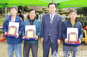 무진장축협(조합장 송제근)은 지난달 26일 무주 지남공원 한풍루에서 황정수 무주군수와 관 내외 기관단체장, 한우농가 등 200여명이 참석한 가운데 제 22회 반딧불 한우경진대회를 개최했다. 무진장축협이 주최하고 무주군이 후원하는 이번 경진대회는 반딧불의 고장, 청정 무주군의 한우산업 발전과 축산농가 소득증대에 기여하기 위해 열렸다. 이날 경진대회에 총 26두의 출품축 중 칡소 송아지 6두, 암송아지 10두, 미경산우 10두가 출전한 결과, 암송아지 부문 최우수상에 이미자 씨가, 미경산 종빈우 부문 최우수상에 신진천 씨가, 칡소 암송아지 최우수상에 최정석 씨가, 미경산 종빈우 최우수상에 홍만수 씨가 각각 영예를 안았다. 송제근 조합장은 “이번 경진대회를 통해 전북한우의 우수성을 소비자들에게 각인시킬 수 있는 계기가 되길 바란다”며 “무진장축협도 자체 브랜드인 ‘장수한우’가 대한민국 대표브랜드를 넘어 세계적인 브랜드로 도약할 수 있도록 더욱 심혈을 기울일 것”이라고 밝혔다.