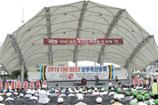 상주축협(조합장 성영욱)은 지난 14일 상주시 북천시민공원에서 2016년 상주축협 조합원 전이용대회사진를 열고 조합 구성원 모두의 합심으로 힘찬 새도약을 이루자는 결의의 장을 이뤘다. 이날 행사에 앞서 성영욱 조합장은 대회사를 통해 “상주축협 창립 58년이라는 유구한 역사 속에서 3개의 금융점포와 사료창고, 동물병원, 암소핵군사업장, 전자경매 우시장 및 지난 2009년에 개점해서 126만명의 방문고객을 돌파한 명실상감한우 홍보테마타운 등의 설립을 통해 내실 있는 축협으로 도약할 수 있었다”고 강조했다. 특히 성 조합장은 “2천750억원의 총자산과 1천800억원의 예수금을 달성한 저력을 바탕으로 앞으로의 100년의 역사도 쉼 없는 발전을 확신한다”며 조합 사업에 대한 조합원들의 변함없는 관심과 참여를 당부했다. 이날 조합원 전이용대회에서는 먼저 체육대회에서 축산인 타워 세우기, 한마음 한방향 등 게임 열전이 펼쳐졌으며, 화합의 장에서는 24개읍·면·동 노래자랑과 인기가수 및 초대공연팀 축하공연이 이어졌다. 폐회식에서는 체육대회와 노래자랑 시상이 있었으며 경품권 추첨을 통해 참가객들에게 푸짐한 상품도 주어졌다.