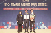 [축산신문 윤양한 기자] 제주양돈농협(조합장 고권진)의 돼지고기 브랜드인 ‘제주도니’가 지난 15일 소비자시민모임이 한국프레스센터 국제회의장에서 주관한 ‘제20회 우수 축산물 브랜드 인증 발표회’에서 한돈 부문 ‘2026년 우수 축산물 브랜드’<사진>로 선정됐다. 제주양돈농협은 생산부터 판매 단계에 이르기까지 체계적인 관리를 통해 고품질 돼지고기를 안정적으로 공급한 점을 인정받아 ‘제주도니’를 ‘우수 축산물 브랜드’에 또 한 번 이름을 올렸다. 이번 2026년 우수 축산물 브랜드의 인증 기간은 2026년 1월부터 2027년 12월까지 2년이다. 고권진 조합장은 “이번 우수 축산물 브랜드 선정은 생산 현장에서부터 유통과 판매에 이르기까지 전 과정에서 품질과 기준을 지켜온 조합원 여러분의 땀과 노력이 모여 이뤄낸 성과”라며 “특히 소비자 눈높이에 맞춘 위생·안전 관리와 지속적인 품절 개선 노력이 인정받았다는 점에서 더욱 의미가 크다”고 밝혔다. 제주양돈농협은 앞으로도 ‘제주도니’ 브랜드가 제주를 대표하는 프리미엄 돼지고기로 자리매김할 수 있도록 생산관리 체계 고도화는 물론, 차별화된 품질 경쟁력과 신뢰 기반의 유통 시스템을 더욱 강화해 나갈 계획이다.