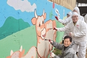[축산신문 김길호 기자] 경기 양평축협(조합장 정규성)과 경기농협(본부장 엄범식)은 지난 6일 양평군 개군면 내리길 27-20 정승농장(대표 노정호)에서 나눔축산운동본부의 지원을 받아 ‘축산환경 소독의 날’ 행사를 진행했다. 이날 참석자들은 방취림 조성과 농장 벽화 그리기를 하며 국민들로부터 사랑받는 축산업을 다짐하는 모습을 보였다. 사진 앞부터 정승농장 노정호 대표, 정규성 조합장, 경기농협 김광식 부본부장, 양평군지부 권영주 지부장과 관계자들이 한우농장에 어울리는 한우 그림을 그리고 있다. 축산신문, CHUKSANNEWS