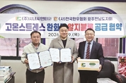 [축산신문 박윤만 기자] ㈜시내씨앤티(대표 김대훈)는 지난 19일 전국한우협회 광주전남도지회(지회장 윤순성)와 고온 스트레스 완화제인 알지미네랄블록 공급협약<사진>을 체결했다. 여름철 더위는 한우에게 큰 스트레스를 주며, 사료 섭취량 감소·번식 장애·체중 증가 둔화·폐사 위험까지 초래할 수 있어 기온이 30℃ 이상 지속되면 비육우와 번식우 모두 생산성이 크게 떨어져 혹서기 대책이 필요하다. 혹서기에 한우는 사료 섭취량 감소로 기온이 26℃ 이상이면 사료 섭취량이 10~20% 감소와 32℃ 이상에서는 증체율 저하와 음수량이 59% 증가한다. 또 소의 체내에서 분당 호흡수가 4배 이상 증가하고 체온 상승으로 과도한 침 흘림·개구호흡이 발생하며, 체온도 반추위 온도 +0.4℃ 상승으로 생리적으로 영향을 끼치고 성호르몬 불균형으로 배란 지연·임신율 저하를 가져온다. 뿐만 아니라 온도가 지속적으로 상승으로 하게 되면 극심한 고온 스트레스와 혼수상태·기립 불능·폐사까지 이어질 수 있다. 시내씨앤티 김대훈 대표는 “여름철 한우 관리의 핵심은 사료 급여 조절·수분 공급·환경 개선”이라며 “여름철 고온 스트레스 피해 감소를 위한 여러 방안 중, 고온에서는 땀이나