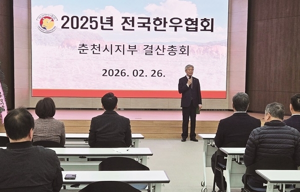 [축산신문 홍석주 기자] 축산물품질평가원 강원지원(지원장 김은미)은 지난 2월 23일 강원도 한우 선도농가 모임인 ‘투플러스 나인 한우 연구회’를 대상으로 ‘고품질 한우 생산을 통한 경쟁력 강화 전략’ 주제의 특강<사진>을 실시했다. 이번 특강은 변화하는 한우 시장 환경에 능동적으로 대응하고 고품질 한우 생산을 통해 농가 경쟁력을 높이기 위해 마련됐다. 특히 공판장 경매 경험이 부족한 한우 농가와 정보를 공유하기 위해 농협음성축산물공판장 김성환 경매실장을 강사로 초빙해 교육을 진행했다. 이날 강의에서는 최근 한우 경매 동향을 비롯해 경매가격에 영향을 미치는 등급판정 요인, 한우의 유전력과 사양관리, 한우 사육두수 및 가격 전망 등 다양한 내용이 다뤄졌다. 김은미 지원장은 “이번 교육이 한우 농가 소득 향상에 도움이 되는 의미 있는 시간이 되었길 바란다”며 “앞으로도 강원지역 한우 농가의 경쟁력 강화와 안정적인 소득 기반 마련을 위해 다양한 교육 프로그램을 마련하겠다”고 말했다. 축산신문, CHUKSANNEWS
