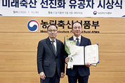 [축산신문 황인성 기자] 대전충남양돈농협(조합장 이제만) 허민회 조합원(대주농장)이 청정축산 실천 공로를 인정받아 미래축산 선진화 유공자 시상식에서 청정축산 부문 대상인 국무총리 표창을 수상<사진>했다. 농림축산식품부는 지난 15일 ‘미래축산 선진화 유공자 시상식’을 열고, 청정축산 부문 허민회 조합원을 비롯한 부문별 수상자들에게 표창을 수여하고 격려했다. 농림축산식품부는 그동안 가축분뇨 냄새 개선을 통해 주민과 축산농가가 함께 공존하는 축산 환경을 만들어 온 허 조합원의 노력을 높이 평가해 국무총리 표창을 수여했다. 허 조합원은 농장 주변 환경 개선을 중심으로 청정·친환경 축산을 지속적으로 실천하며, 지역 주민과 함께하는 양돈 경영을 통해 상생하는 축산 모델을 만들어 온 선진 양돈농가로 평가받고 있다. 특히 무창돈사와 중앙집중 환기 시스템을 운영하고, 냄새방지시설과 농장 맞춤형 미생물을 제조·사용하는 등 체계적인 환경 관리로 ‘냄새 없는 농가’로 지역에서 정평이 나 있다. 허 조합원은 수상 직후 “지역 주민과 농장은 반드시 상생해야 한다는 신념으로 농장 환경 개선에 꾸준히 노력해 왔을 뿐인데 큰 상을 받게 돼 영광”이라며 “대전충남양돈농협의 전폭
